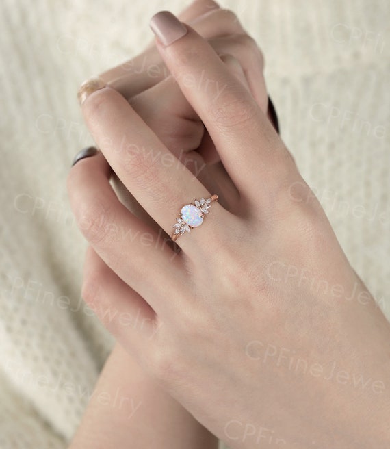 Vintage Lab Opal Engagement Ring Art Deco Rose Gold Diamond Etsy