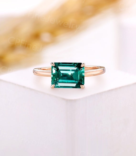 Antique Emerald Cut Lab Emerald Engagement Ring Solitaire Ring Etsy